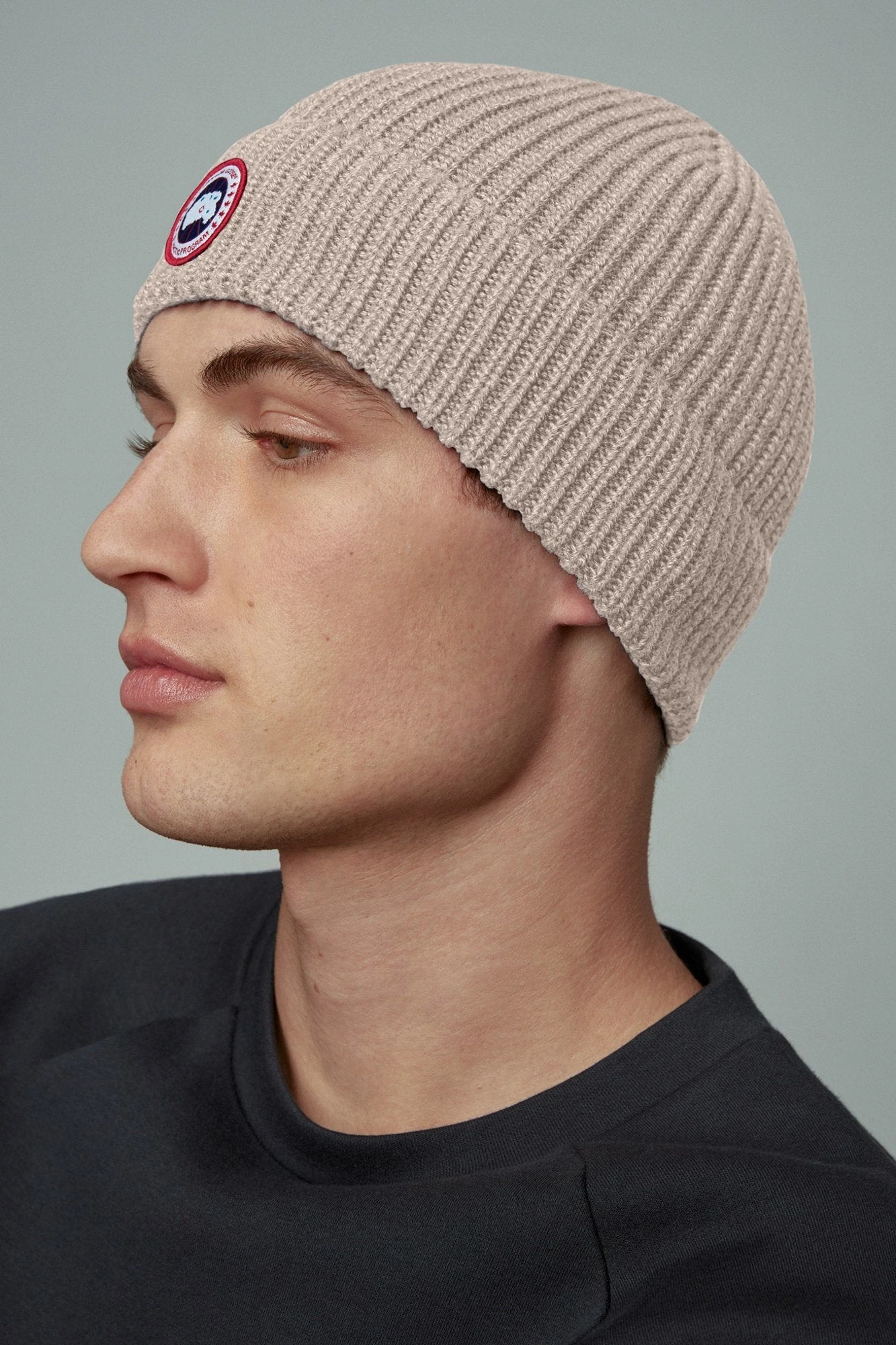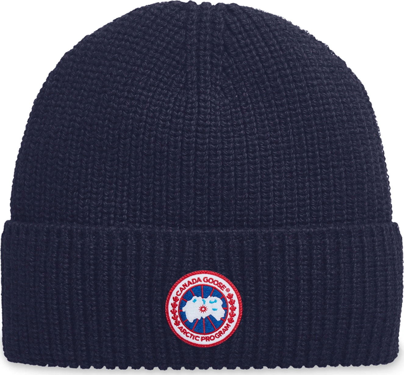 This toque is crafted in Italy with 100% Merino wool for maximum warmth and softness, and finished with our iconic Canada Goose disc on the fold up