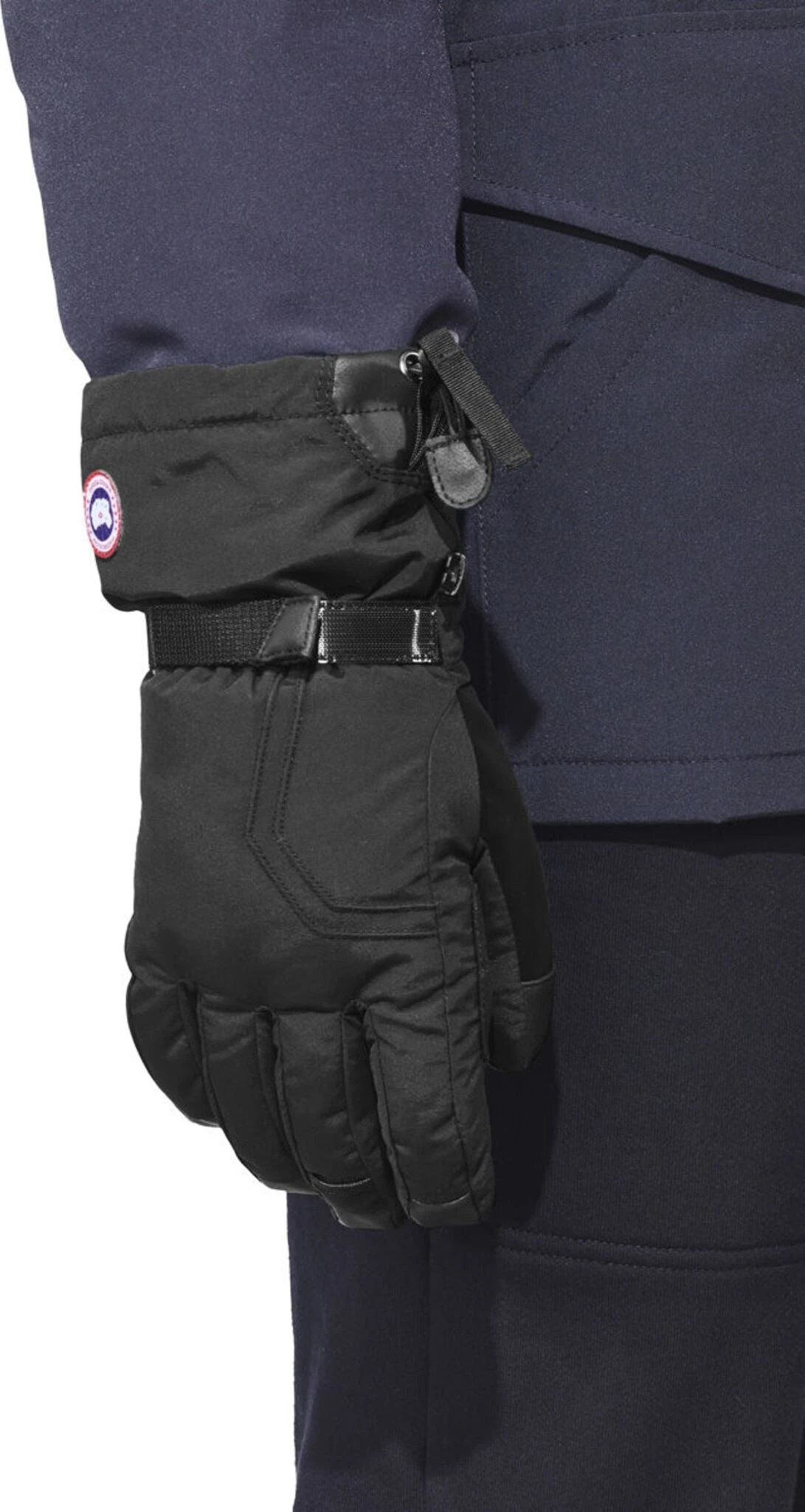 The Men’s ARCTIC DOWN Gloves from Canada Goose are great for cold winter activities. 525 Fill Power White Duck Down provides these gloves with the premium warmth made to handle the coldest Canadian winters. The 100% nylon shell provides added durability and the cord lock has an elastic drawcord at the cuff opening to keep the gloves on snug, and the cold air out. The glove clips make it easy for you to clip them to your jacket or your bag when you’re not using them.