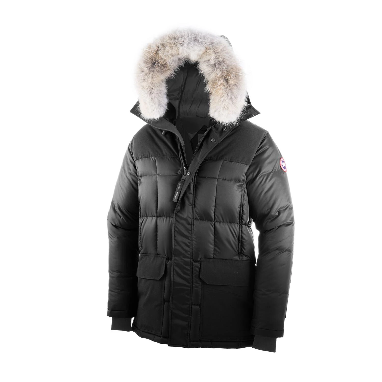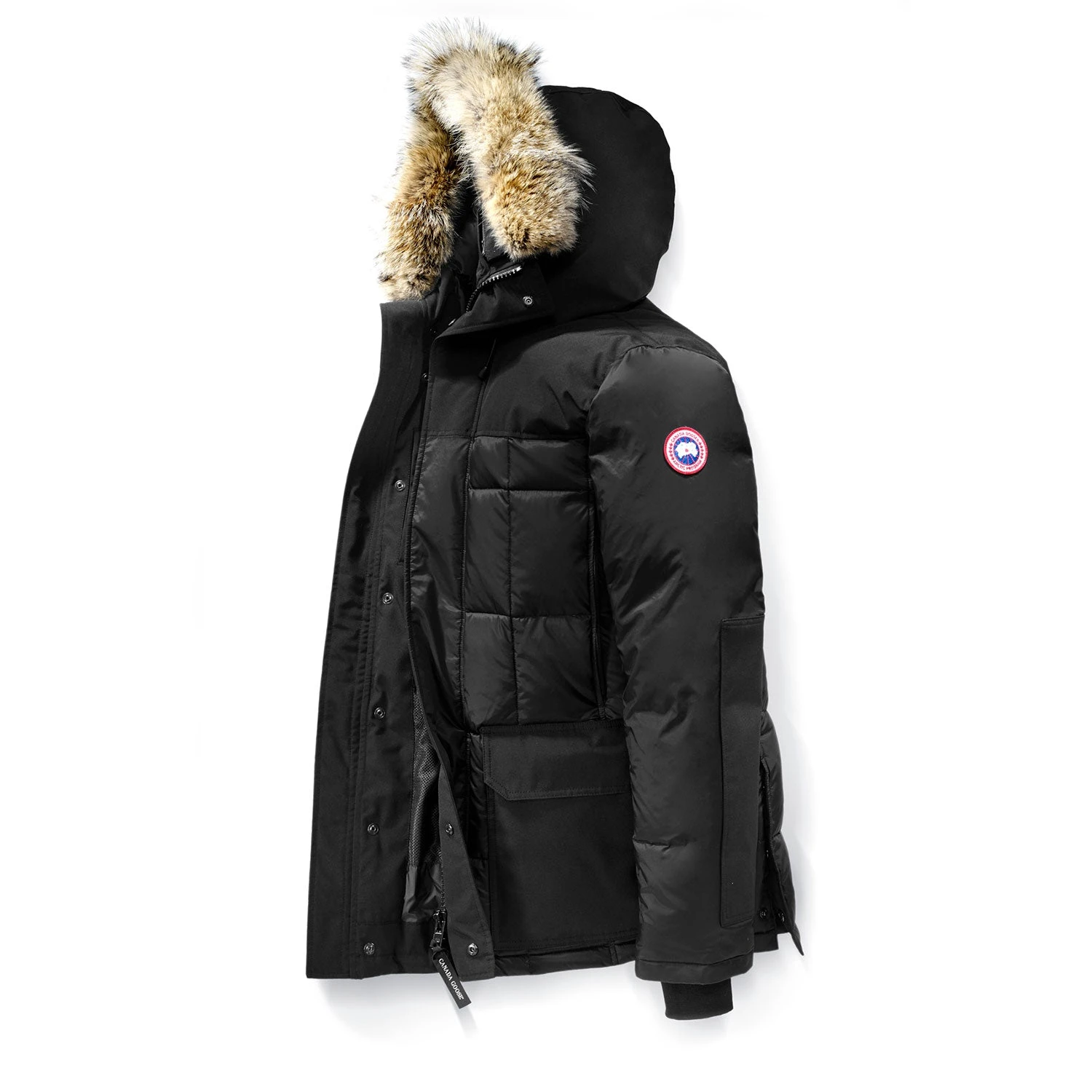 This Callaghan parka blends exceptional Canada Goose warmth with a functional mixed fabric shell fabric design. It’s padded with 675 fill power White Duck Down and utilizes a body fabric made from soft and durable Strati-Form 30D. Rugged and weatherproof Arctic Tech fabric braces the hood, shoulders, forearms, and pockets, and helps to shed away falling snow. This Callaghan’s fashionable slim-fit and removable Coyote Fur ruf, give it the looks necessary for any winter city, while its thermal capacity has been rated for temperatures dropping to -25°C.
