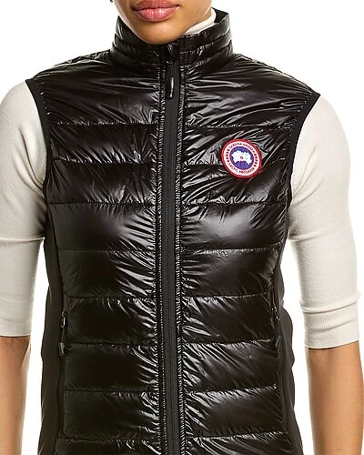 - Hybridge Lite Vest in black with quilted design, solid paneling, patch logo and two front zippered pockets