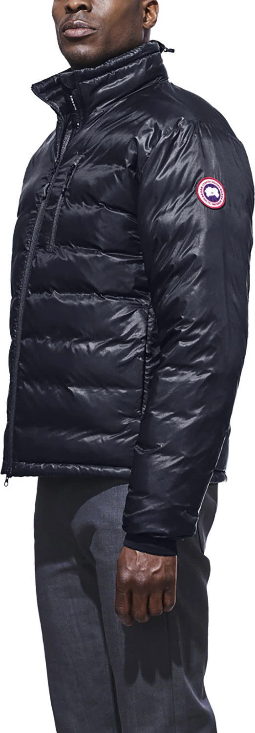 The Canada Goose men’s Lodge jacket combines durable windproof construction, down-insulated warmth, and fashion-forward looks. It’s padded with 750 fill power Hutterite White Duck down and rated a 2 on the Canada Goose Thermal Experience Index, indicating its core warmth and comfort in temperatures as low as -15°C. It features an outer shell made with durable Basecamp -20D ripstop with a DWR water-repellent finish. The down-filled collar adjusts with a drawcord. Single-hand adjustable hem can be tightened to eliminate cold drafts.