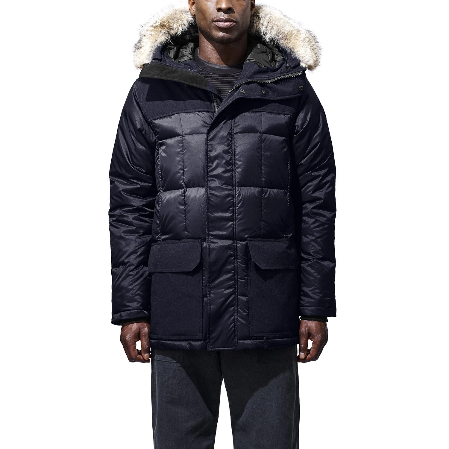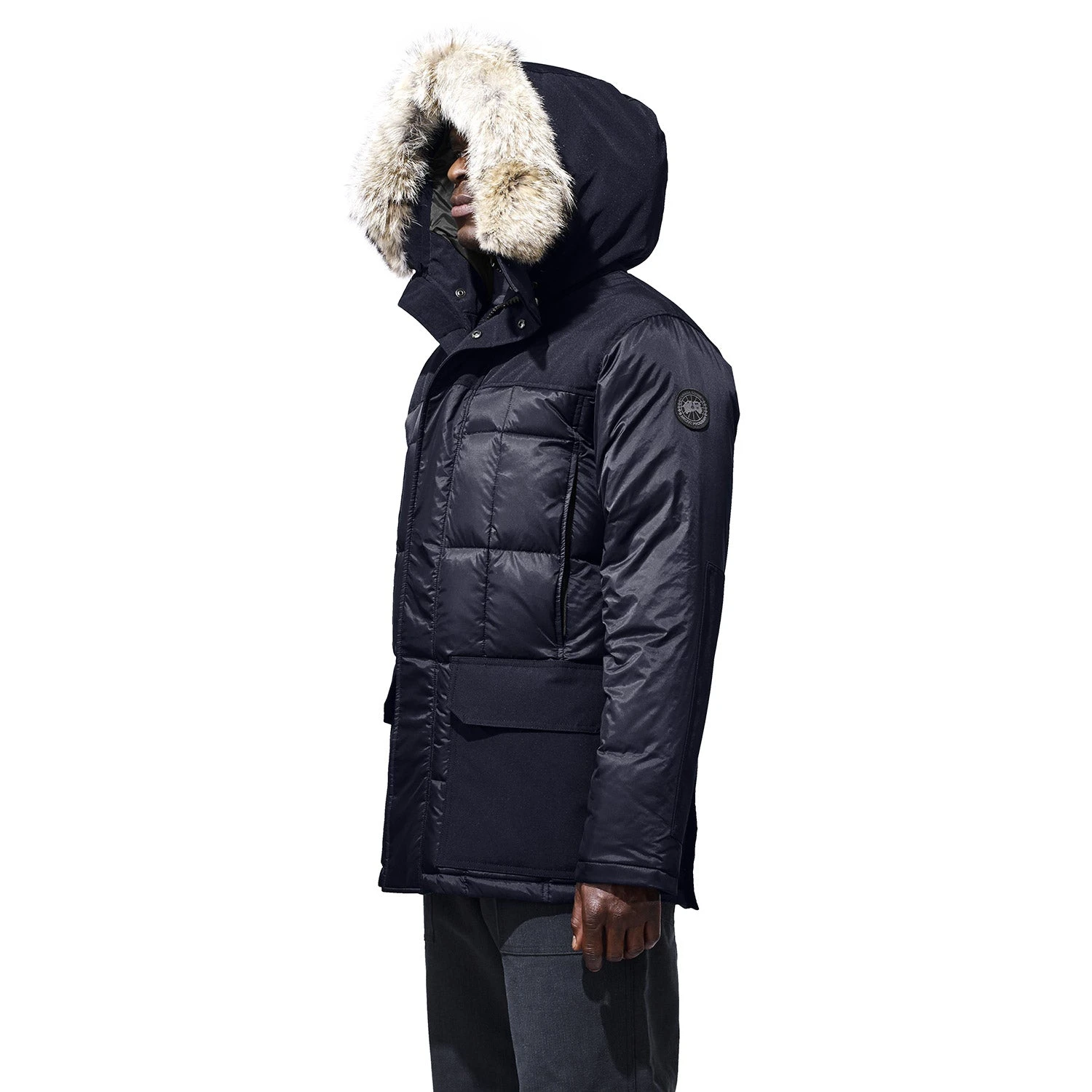 This Callaghan parka blends exceptional warmth with a mixed shell fabric design and the patented, darker, Canada Goose Black Label aesthetics. It’s padded with 675 fill power White Duck Down and utilizes a body fabric made from soft and durable Strati-Form 30D, which is aided by rugged Arctic Tech fabric along the hood, shoulders, forearms, and pockets. This Callaghan’s fashionable slim-fit and removable Coyote Fur ruf, give it the looks necessary for any winter city, while its thermal capacity has been rated for temperatures dropping to -25°C.