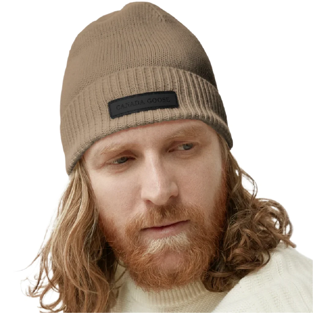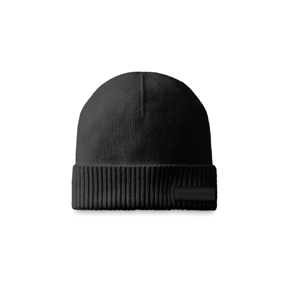 This versatile beanie is rib-knit with breathable Italian-spun Super Fine Merino Wool for warmth without the weight. Finished with a silicone & grosgrain heritage-inspired Canada Goose emblem. Adjust the foldover cuff for added protection.