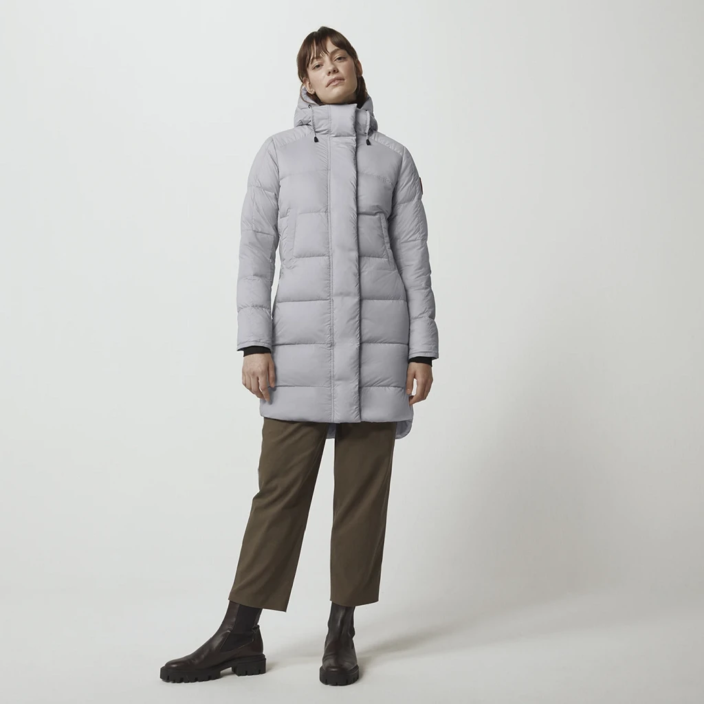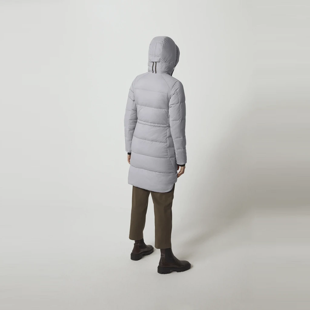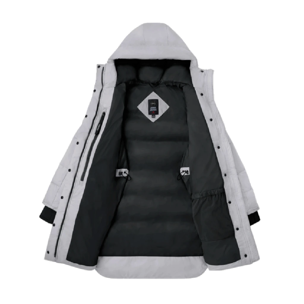 - 2-way adjustable down-filled hood adds warmth and element protection. Signature double-stripe reflective details at back for added visibility in low light