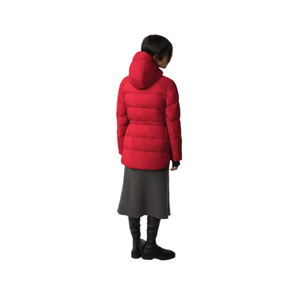 - 2-way adjustable down-filled hood adds warmth and element protection. Signature double-stripe reflective details at back for added visibility in low light