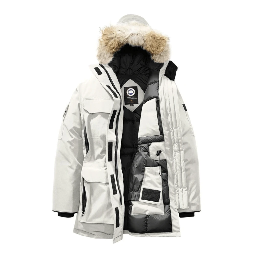 - Non-removable coyote fur ruff surrounding a 2-way adjustable tunnel hood, with an adjustable bracing wire for superior protection in high-wind conditions