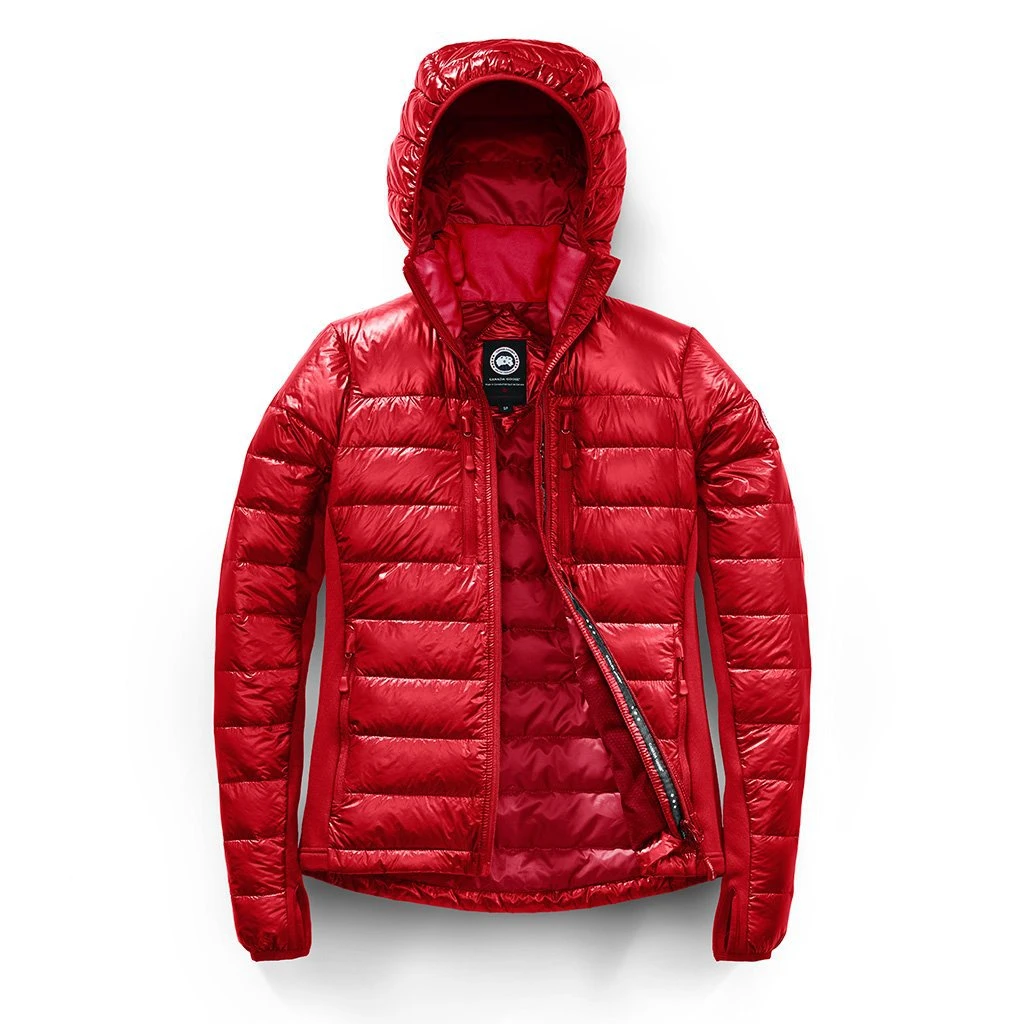 - Insulated wind guard that extends under centre front zipper, Canada Goose logo ribbon runs along center